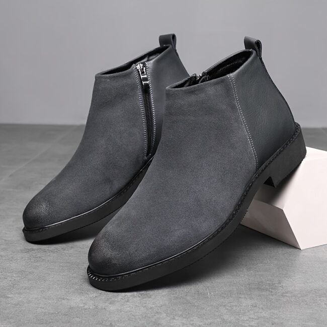 Men’s -like PU Boot – Glossy Glossy/ Matte Black & Red/ – Lace-Up & Hook-and-Loop Closure – Chunky EVA Cushioned Base – Low-Top Height – British Work Boots for Men – Gothic Arch – PU Material – Multi-Color Options (Black, Red/ Brown, Grey, White) – Casual
