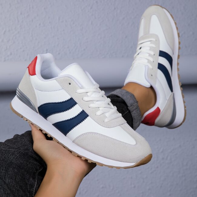 LEIJOP Men’s Low-Top Sneakers – Lightweight -like Texture & Arch, Lace-Up Closure, White/Navy/Black/Beige/Grey Color Options, EVA/TPR Cushioned Sole, Minimalist White Laces & Black Toe Cap – Gym, Travel, Running Shoes for Men – Multi-Color Options, Versat