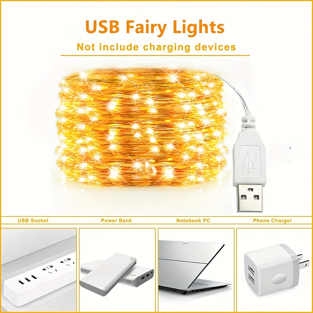 Product Name: USB LED Copper Wire Light Product Size:2m/6.56ft-20 LED, 5m/16.4ft-50 LED, 10m/32.8ft-100 LED Wire Color: Copper Wire (Sliver) Lamp Color: Warm White, White, Multicolor, Blue USB Plug: White Plug Length 50cm/1.6ft Lamp Beads Interval: 10cm/3.93in Power Supply: USB 5V
