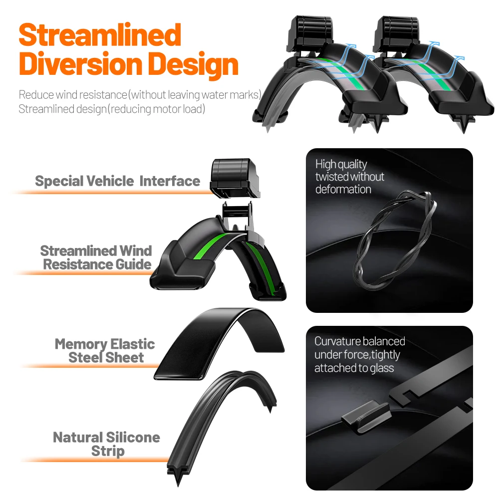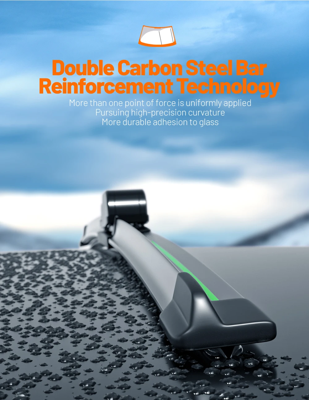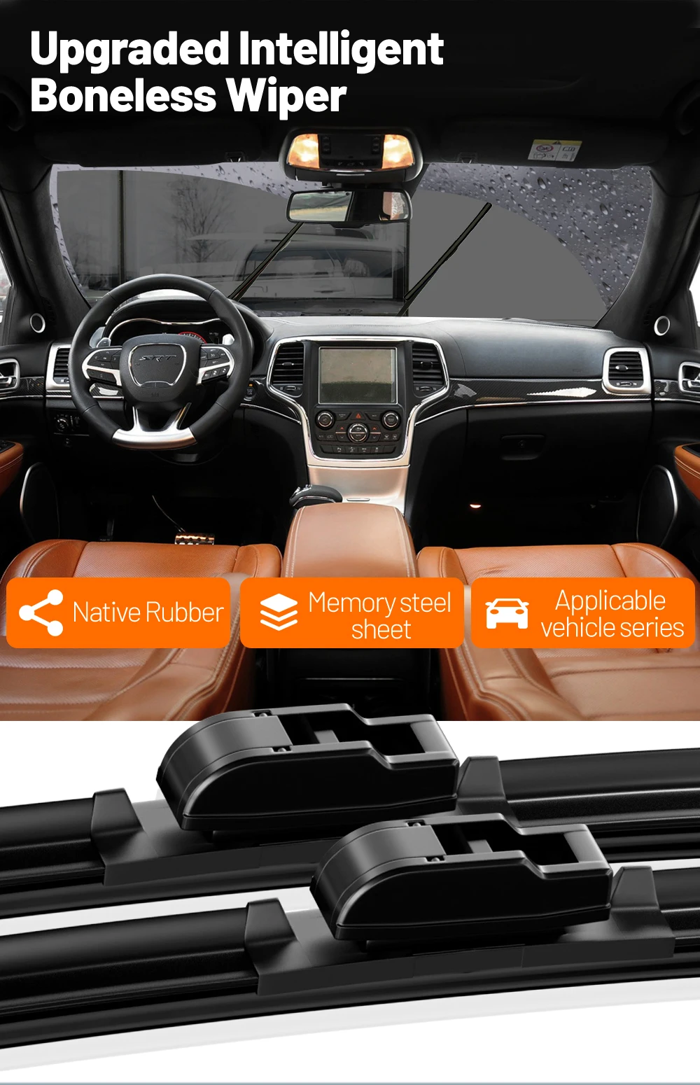 Tension memory applies even pressure along the entire blade lengt. Specially blended rubber delivers the ultimate smooth, clean, chatter-free wiper. Aerodynamic design significantly reduces drag, noise and wind lift. Intelligent boneless wiperïŒprevents ice and snow build-up from the exposure of metal/plastic components. Easy and quick installation, perfect fit, no need for awkward adapters, install in seconds.