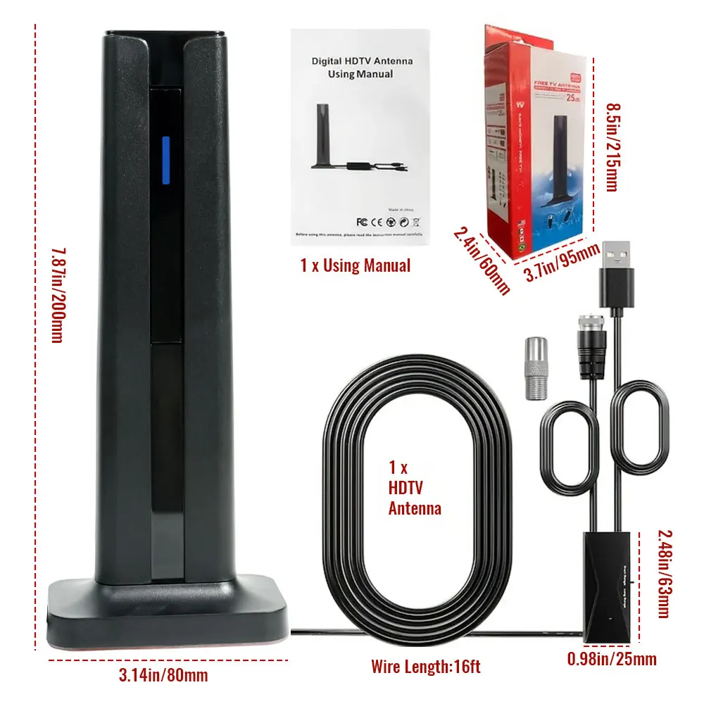 đă UP TO 200 MILES RANGEăOur TV antennas are of the highest quality and have an extremely wide signal range, up to 200 miles of reception. It adopts upgraded Smart IC Chip which can receive signals 360° and filter out cellular and FM signals, providing you with a clearer picture and high voice quality while minimizing noise. This will give you a crystal clear viewing experience of all major HD channels.