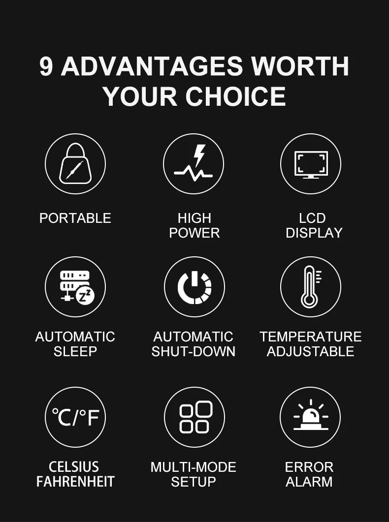 Feature: Automatic shutdown, automatic sleep, fault alarm