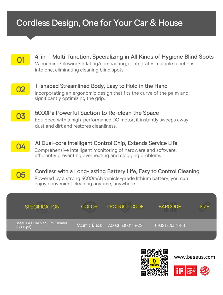 Model Name: Baseus AT 4-in-1 Car Vacuum Cleaner