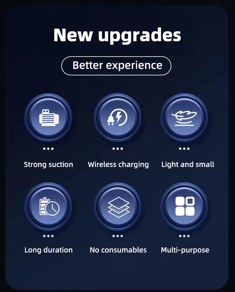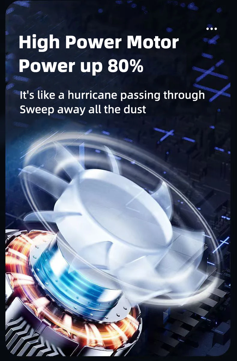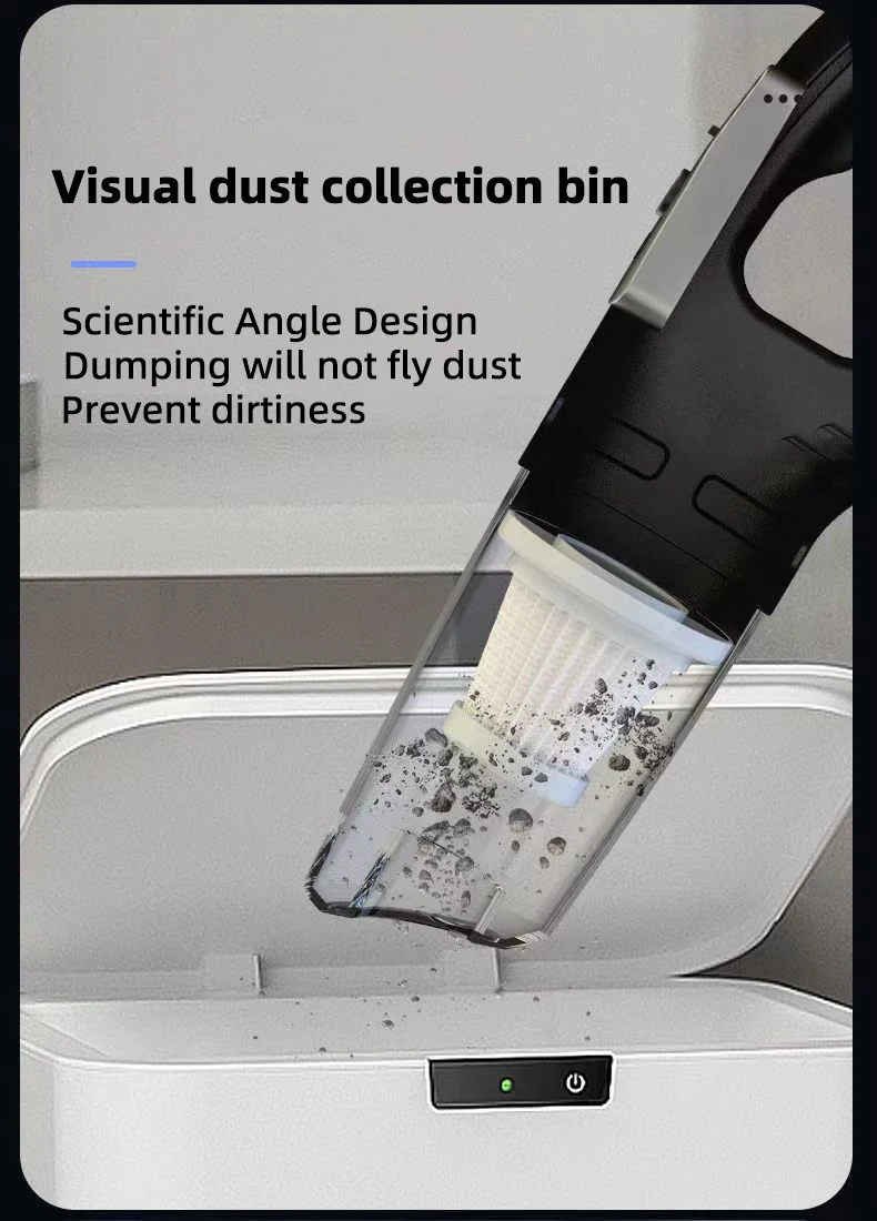 1.Powerful Motor and Lightweight Design: This car vacuum cleaner features a powerful motor that delivers impressive suction while maintaining a lightweight design. lt effortlessly sucks up dust and stubborn pet hair, making it perfect for keeping your car clean. The cordless design ensures convenient maneuverability, allowing even children to easily grip and clean with it.