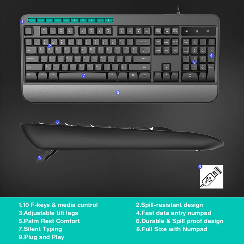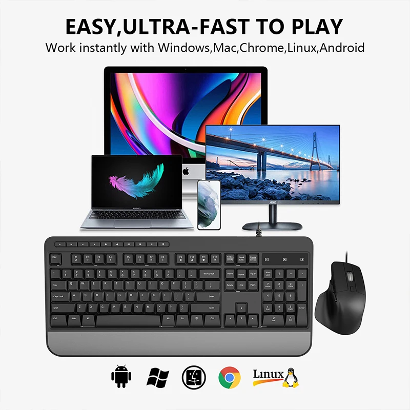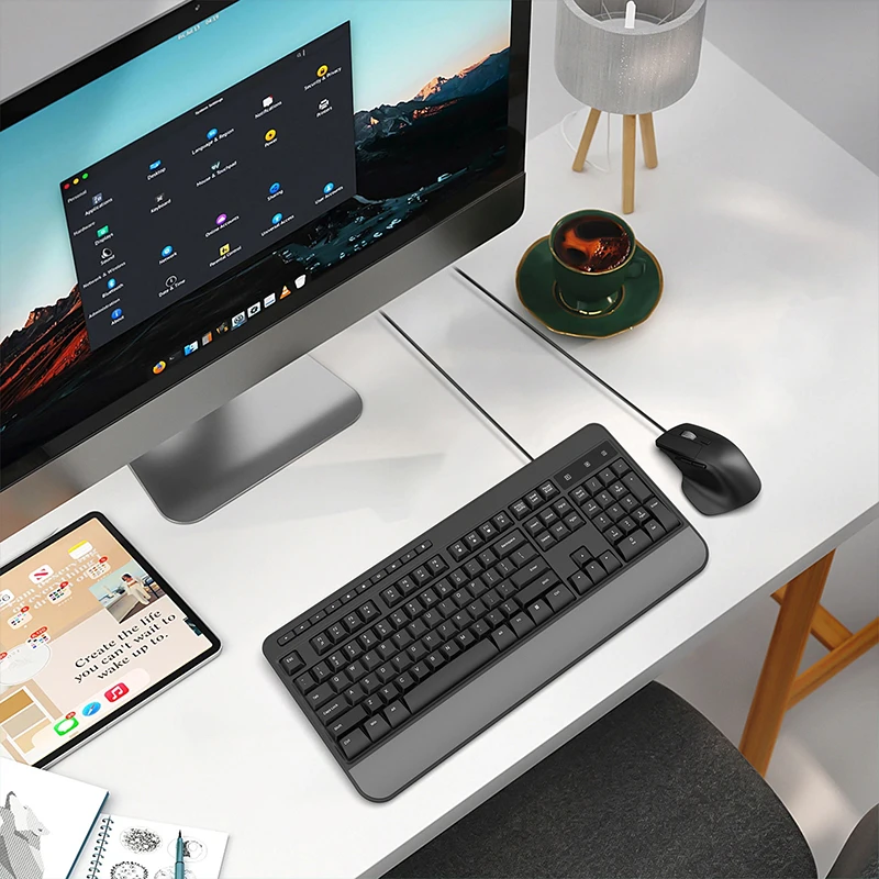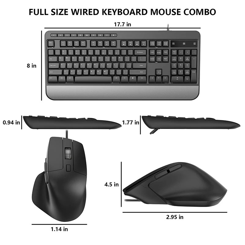 COUSO Wholesale Custom Office Computer Keyboard and Mouse Ergonomic Full-Sized Ergonomic Wired Keyboard and Mouse Combo