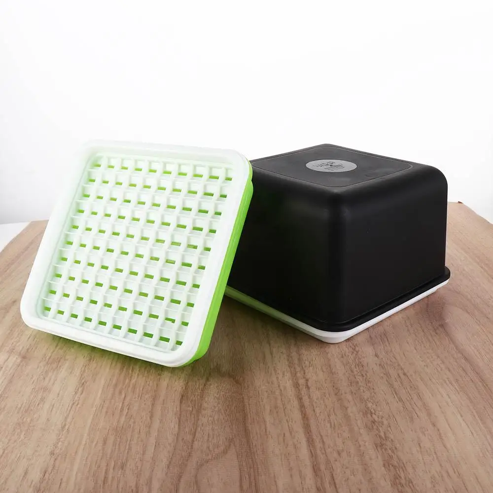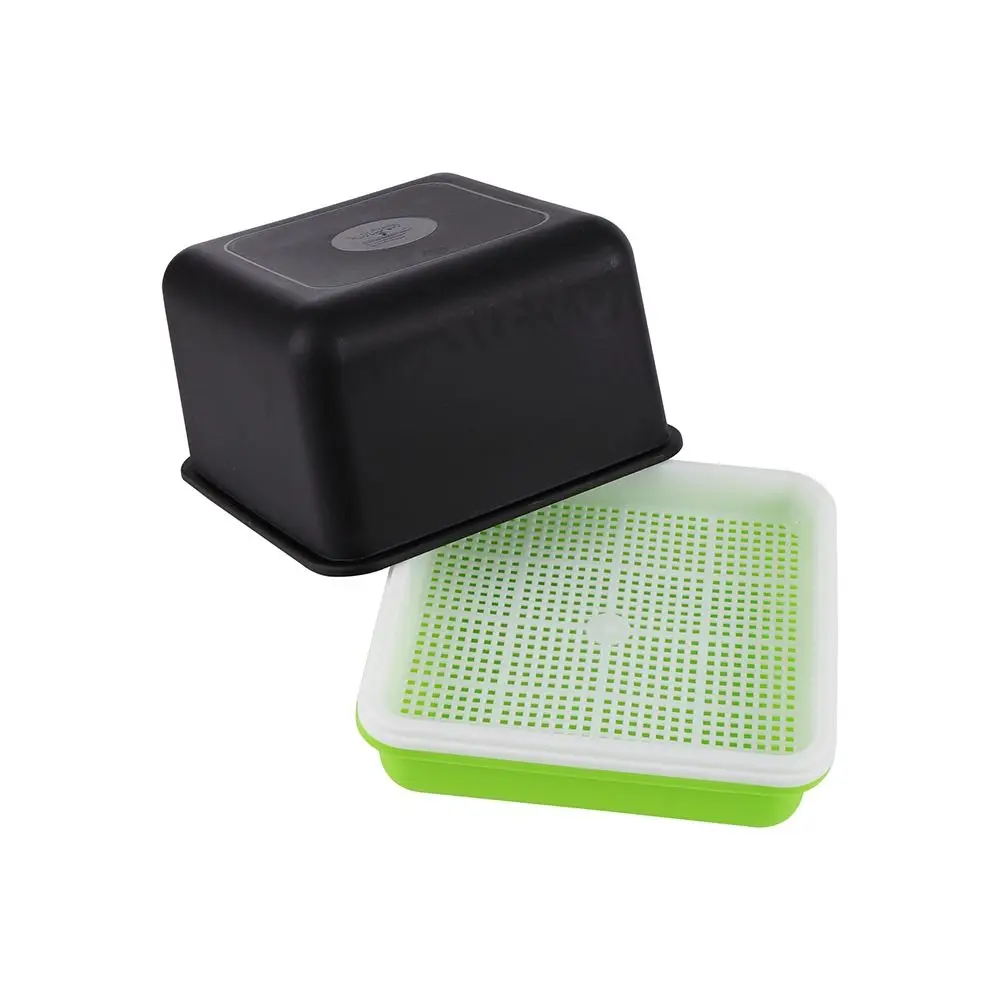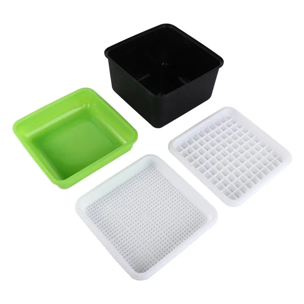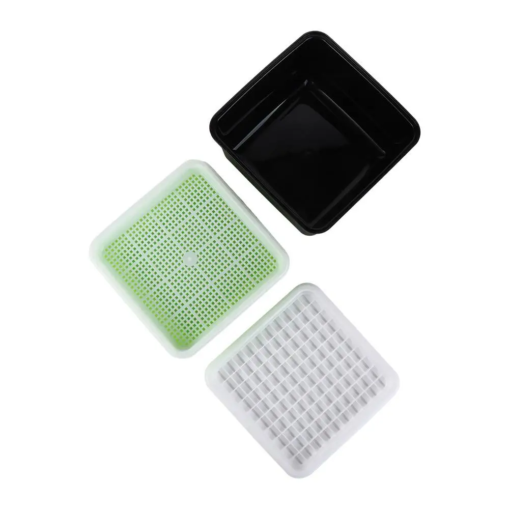 ăDetailsă: A perfect sprouting tray set that includes : 1Pc black shading cover, 1Pc white sparse big grid tray(Square one have extra one dense small grid tray), 1Pc green water container.The grid tray allows for easy drainage and prevents small seeds from falling through.