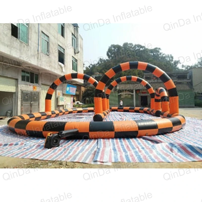Kids play outdoor sports games go kart race air track for balls inflatable race track