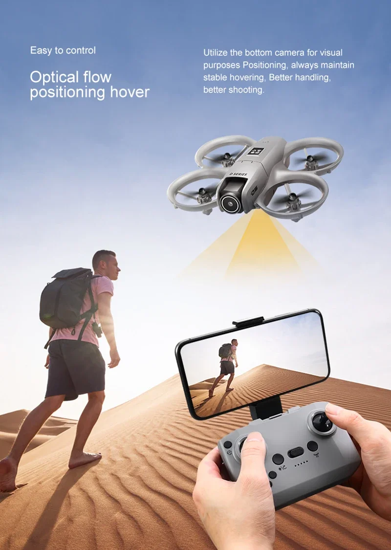 2: The drone has a fixed altitude maintenance mode function, built-in three sided sensing obstacle avoidance, electrically adjustable lens, and can achieve 180 ° upward shooting, optical flow fixed-point positioning, and stable flight.