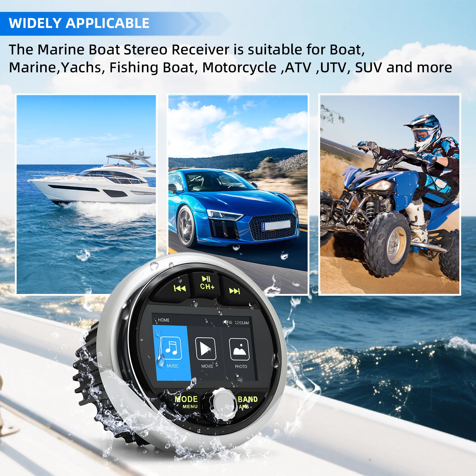 Marine Audio Stereo Bluetooth-compatible MP5 Media Player FM AM USB Port AUX Radio Player For Boat Yacht ATV UTV Accessories