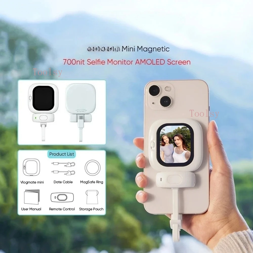 With MagSafe magnetic attachment,Vlogmate Mini easily sticks to the back ofyour iPhone. No apps or complicated setuprequired-just plug in and start previewingthrough the rear camera instantly.It also comes with a Bluetooth remote forflexible control, while retaining all youriPhone’s native camera functions.