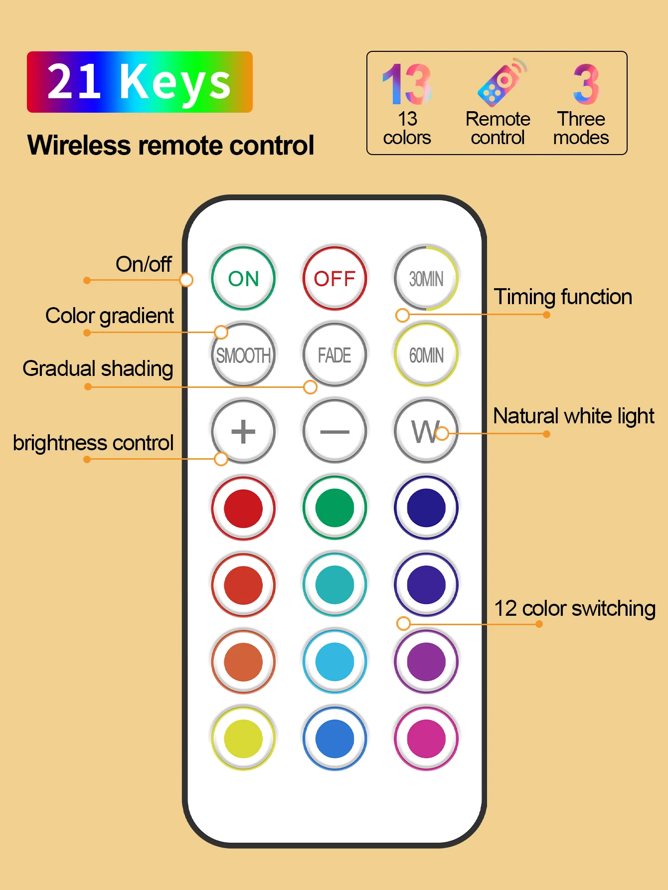 【2 Ways of Control】[1]. Touch control can control the switch of light sources as well as the light color switch of the front light source, long press can infinitely dim the light. [2]. The remote control can additionally control one-touch on/off, one-touch switching of light color, and also 5 brightness.