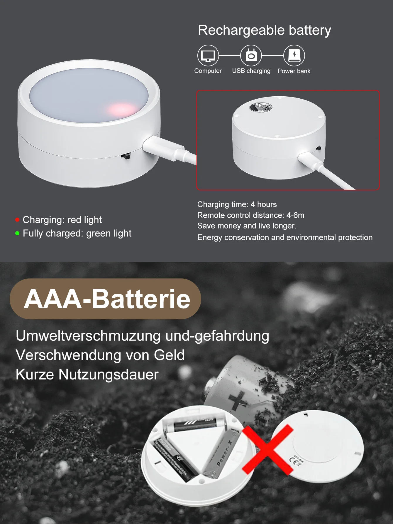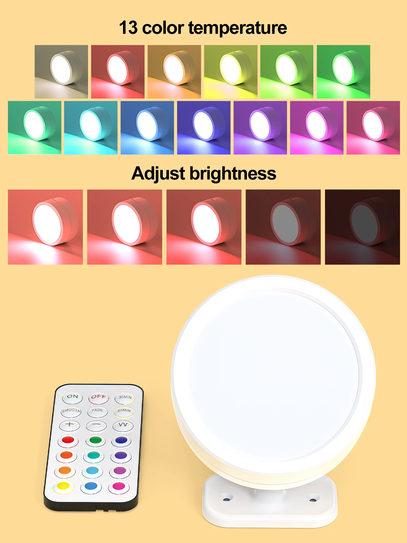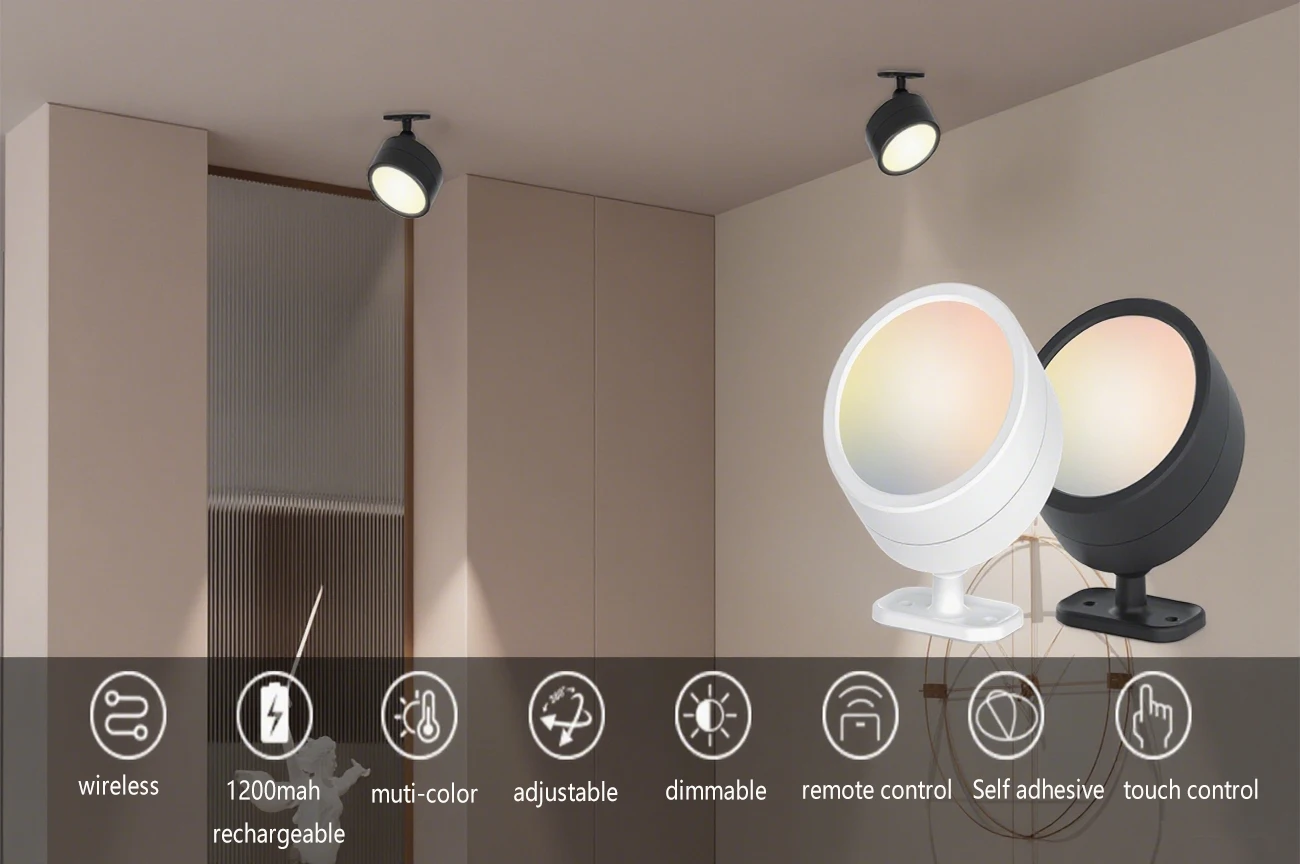 RGB Magnetic 360° Rotation Wireless Remote Control Spotlight Rechargeable LED Wall Lamp For Bedroom Living room decor
