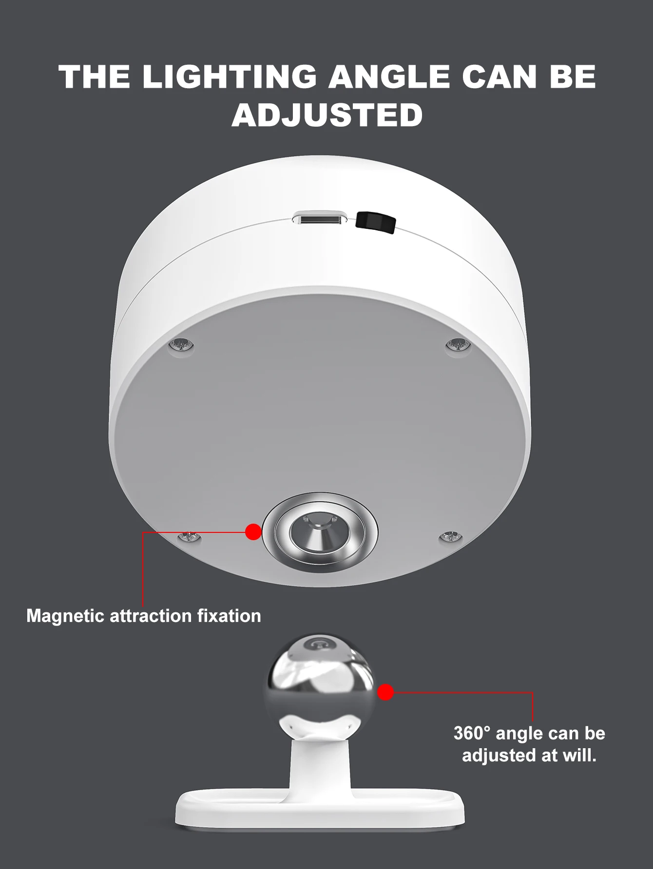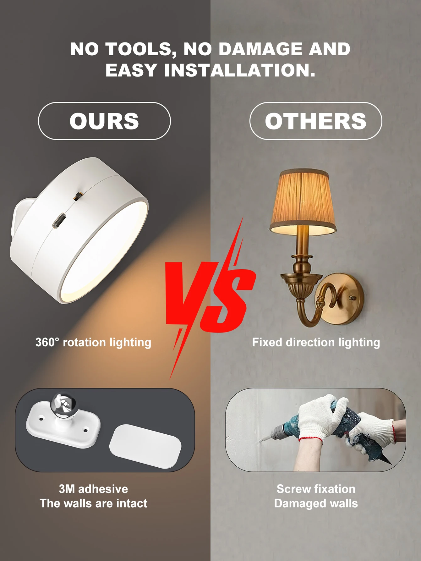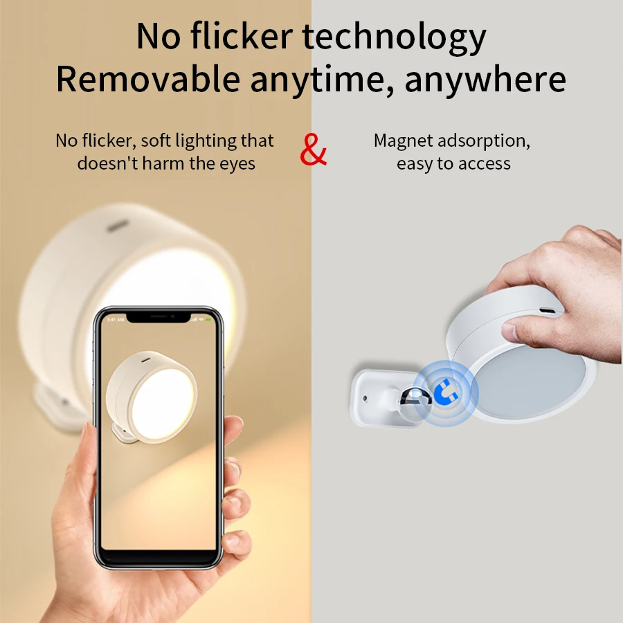 【Magnetic Removable】This is a removable wall light with magnetic, its base bracket allows you to adjust the angle in any 360°, you can also remove it to take it to charge or act as a temporary flashlight.
