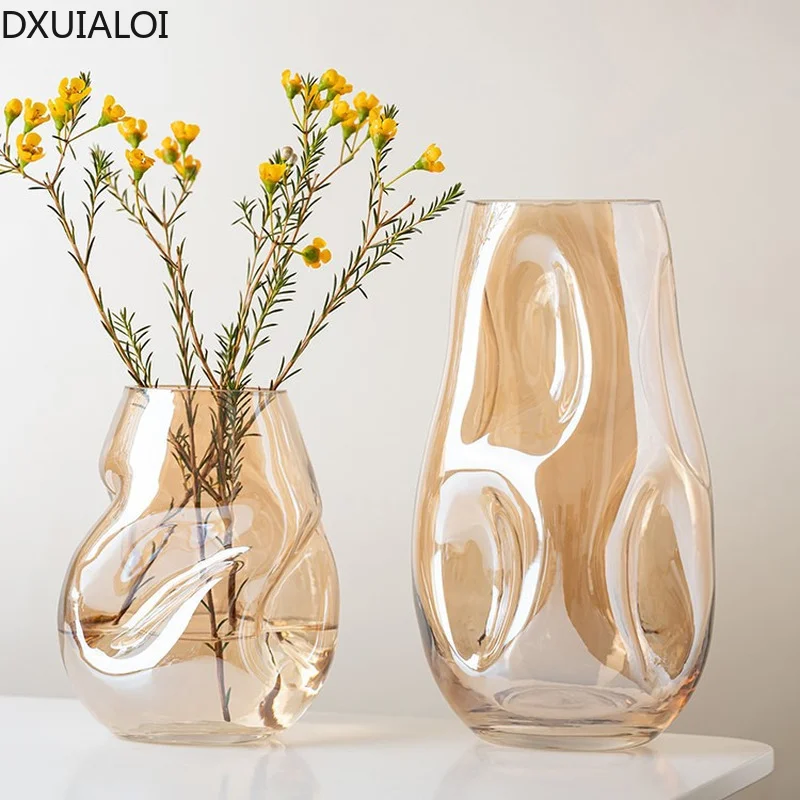 DXUIALOI modern, simple and irregular, special-shaped stained glass vase, living room desktop flower arrangement, home decoration