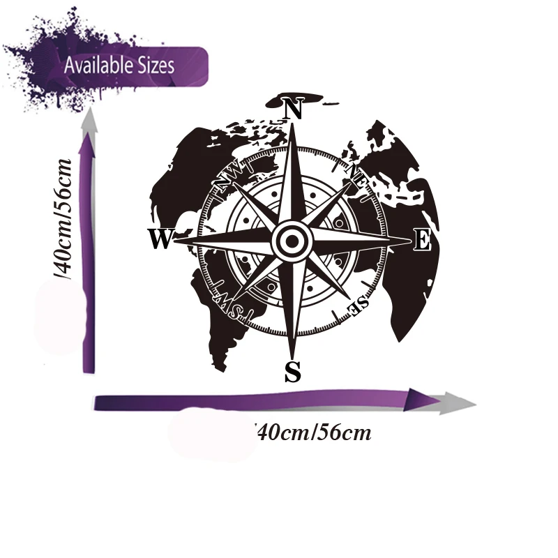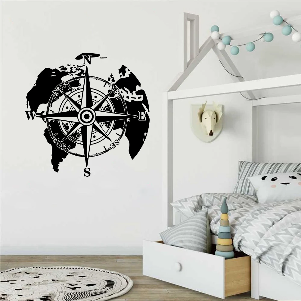 Modern World Map Compass Camper Wall Sticker Office