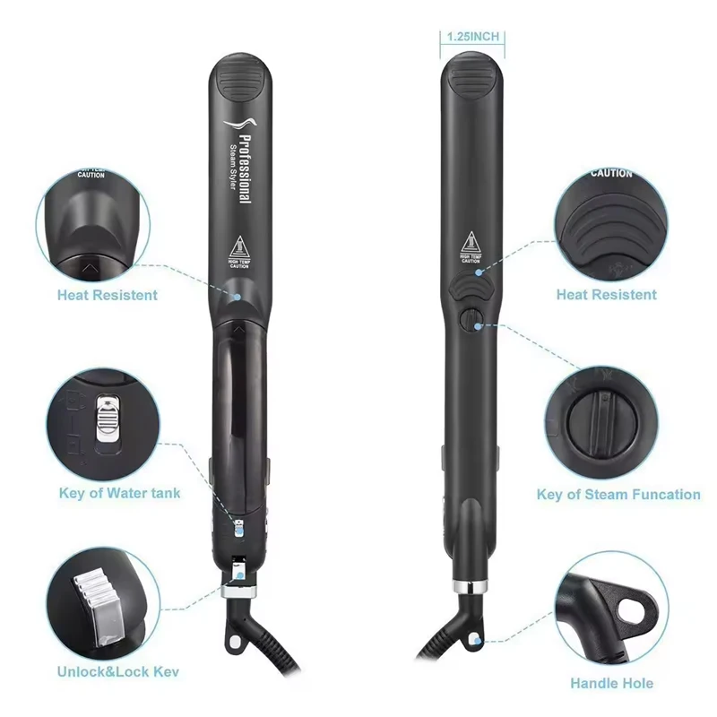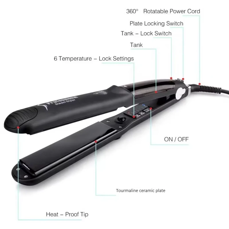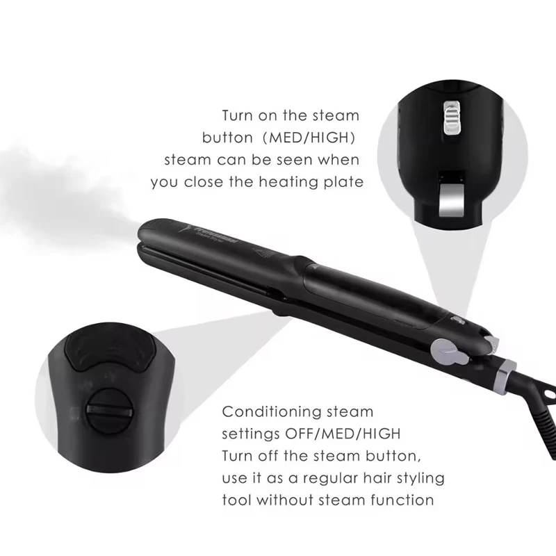 This 2-in-1 steam hair straightener and curling iron features ceramic PTC heating elements, offering rapid heating and temperature control ranging from 120 ° C to 230 ° C. It is portable, multi-functional and specially designed for a variety of scenarios including home, salon and travel
