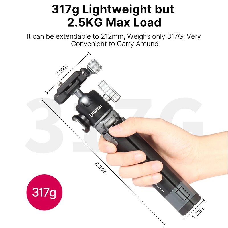It can be extendable to 212mm, Weighs only 317GVery Convenient to Carry Around