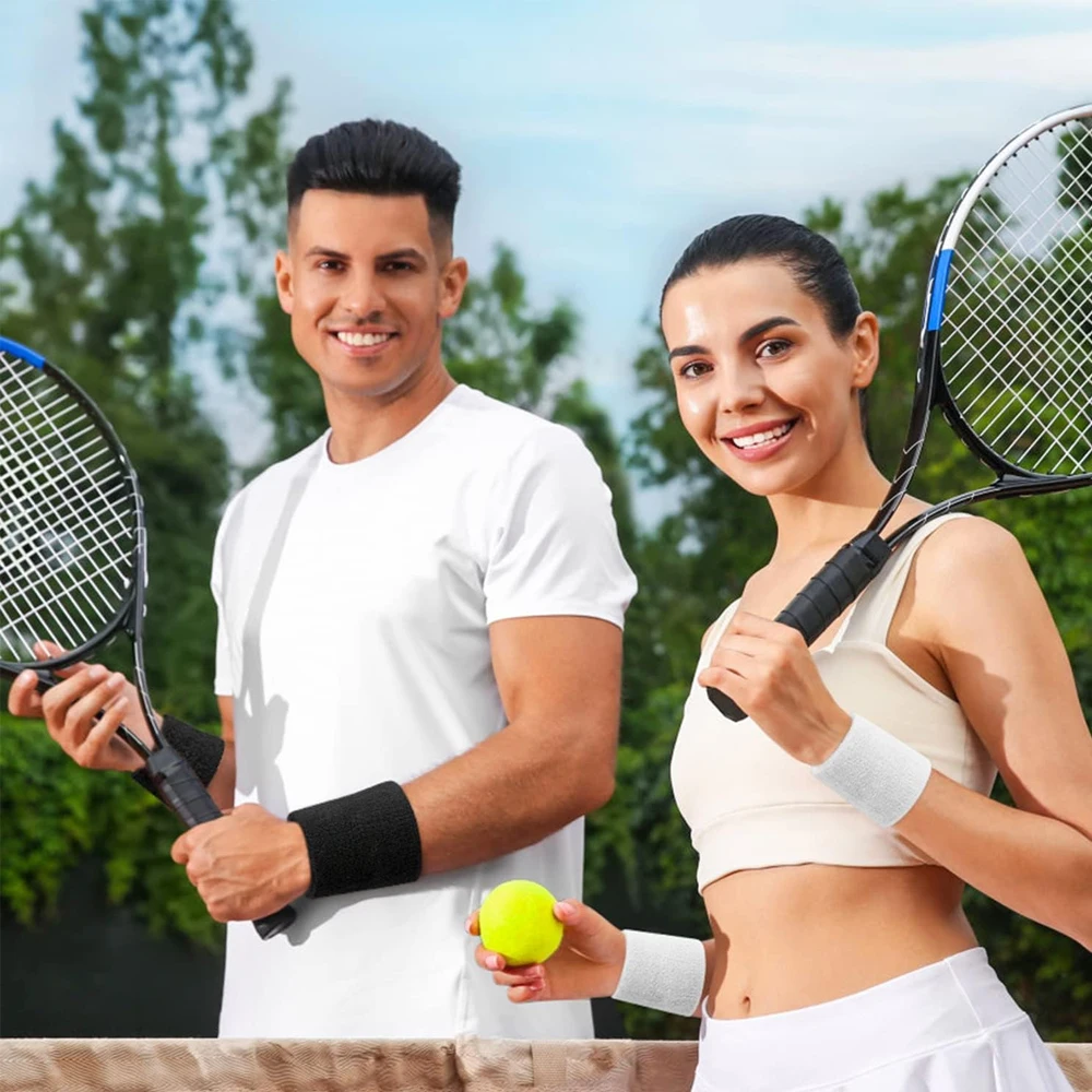 This wrist sweatband is made of super water absorption Polyester & Diene Elastane & Spandex, greatly enhanced sweat absorption, soft and comfortable, non-toxic and odorless.