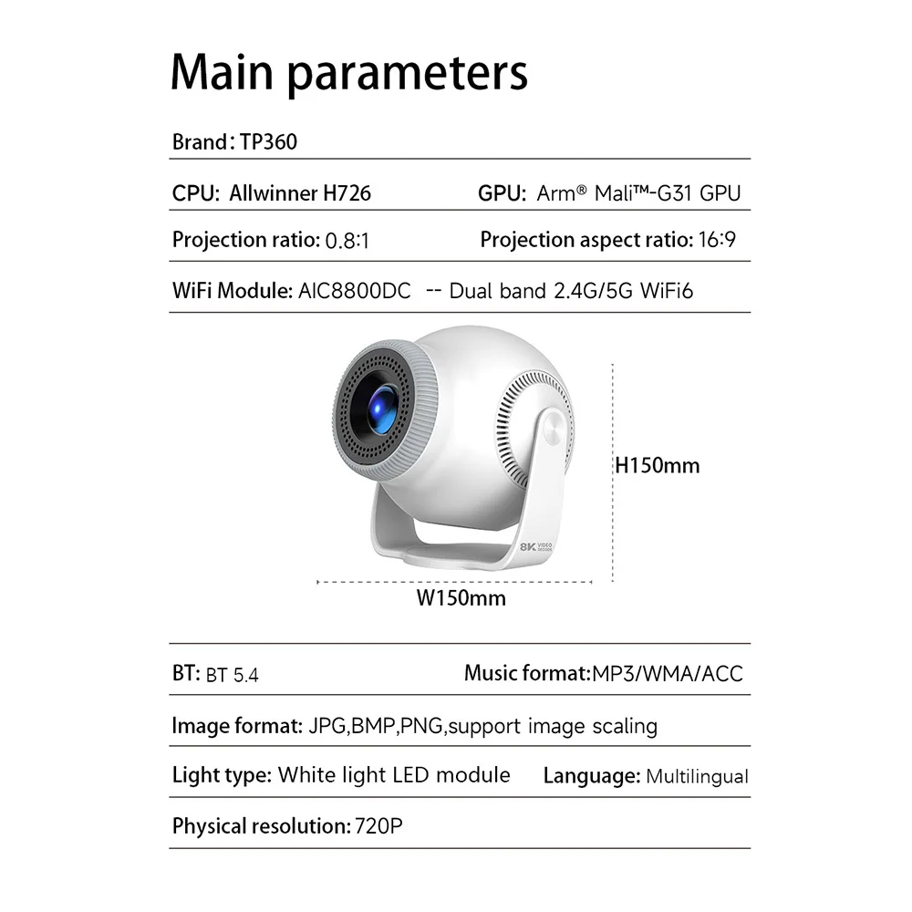 Velec Projector Android 14 8K Decoding Auto Focus 450 ANSI 720P TP360 New Portable Outdoor Movie Projector For Home Theater