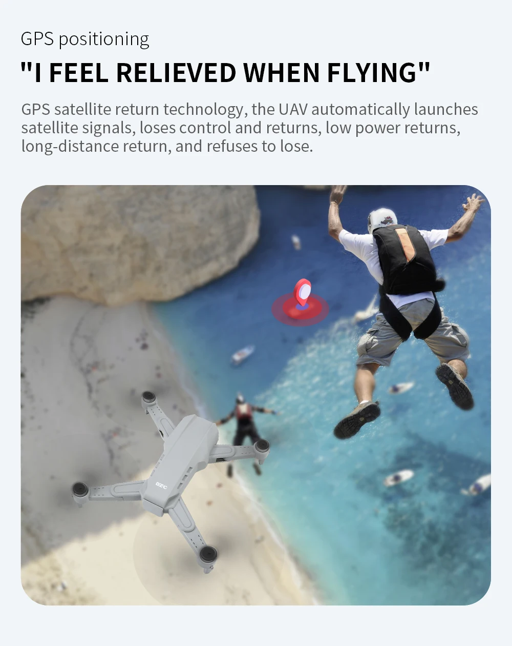 – GPS Assisted Flight. Provides you with accurate positioning details of your drone.The drone will automatically return to home precisely when its battery is low or the signal is weak when flying out of range, never worrying about losing the drone.