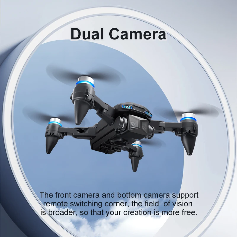 Up/down/front/back, left/right turn, side flight, cool LED lights, stunt roll, headless mode, one click automatic return, altitude maintenance mode, WiFi FPV, Dual lens switchable, supporting landscape/portrait/overhead shooting, electrically adjustable lens 90 °