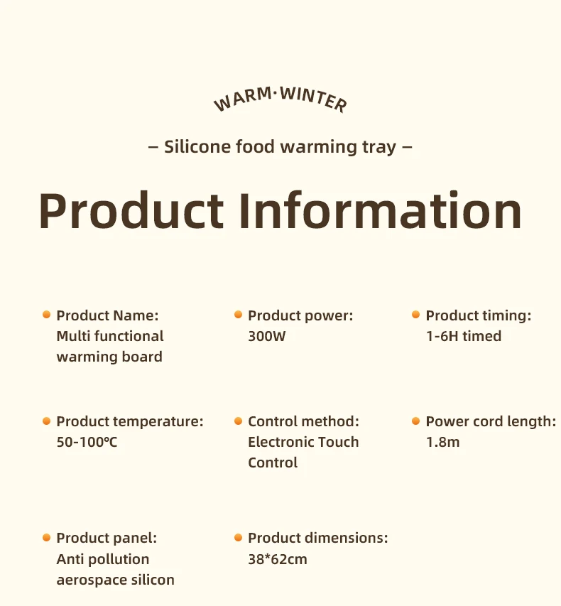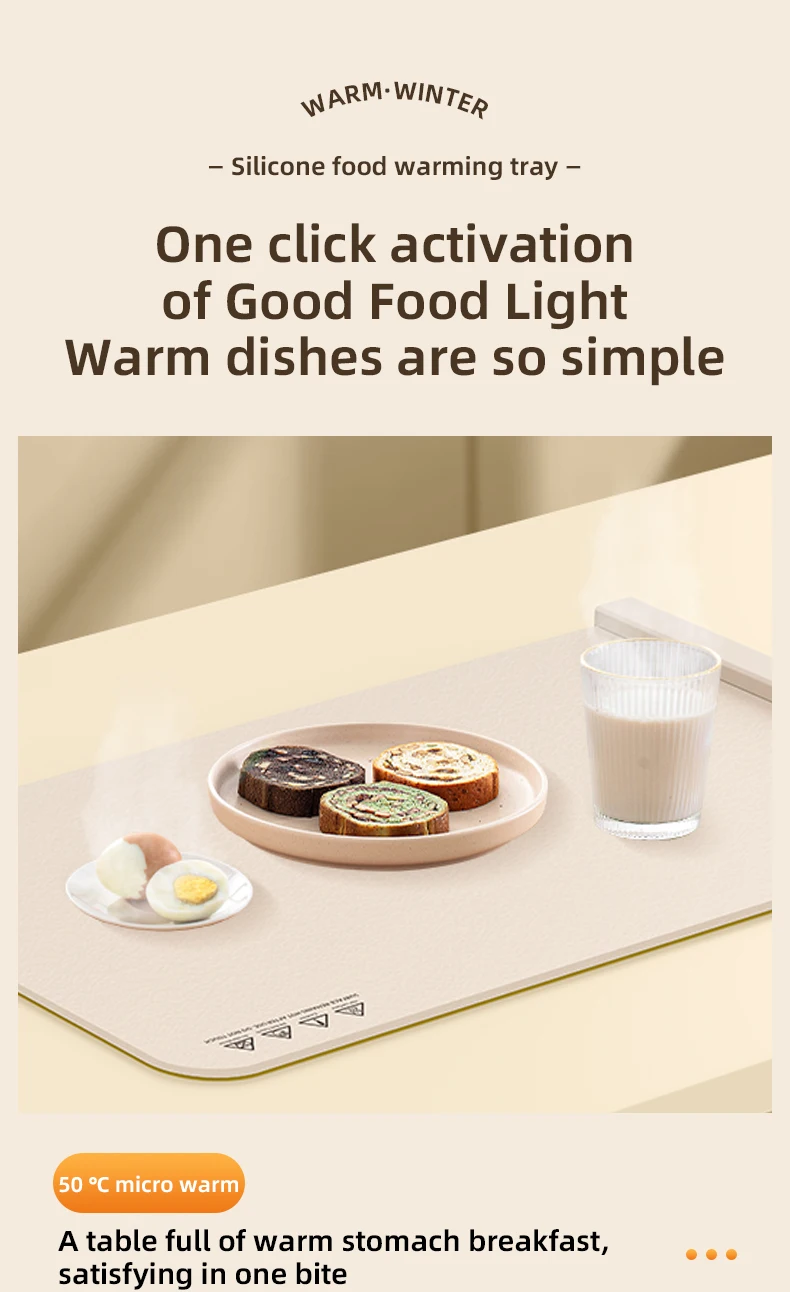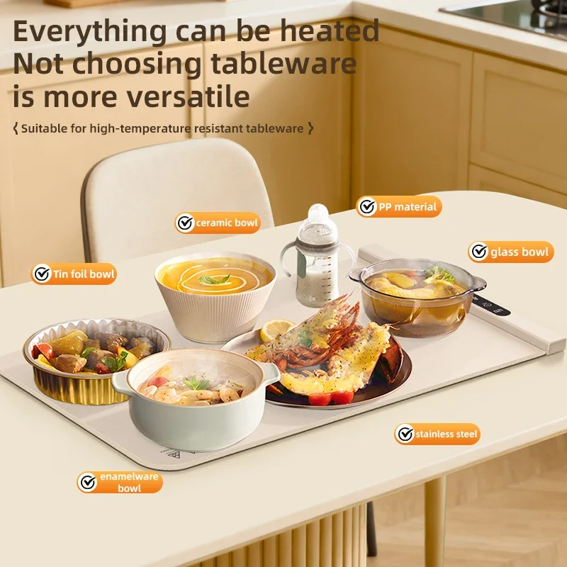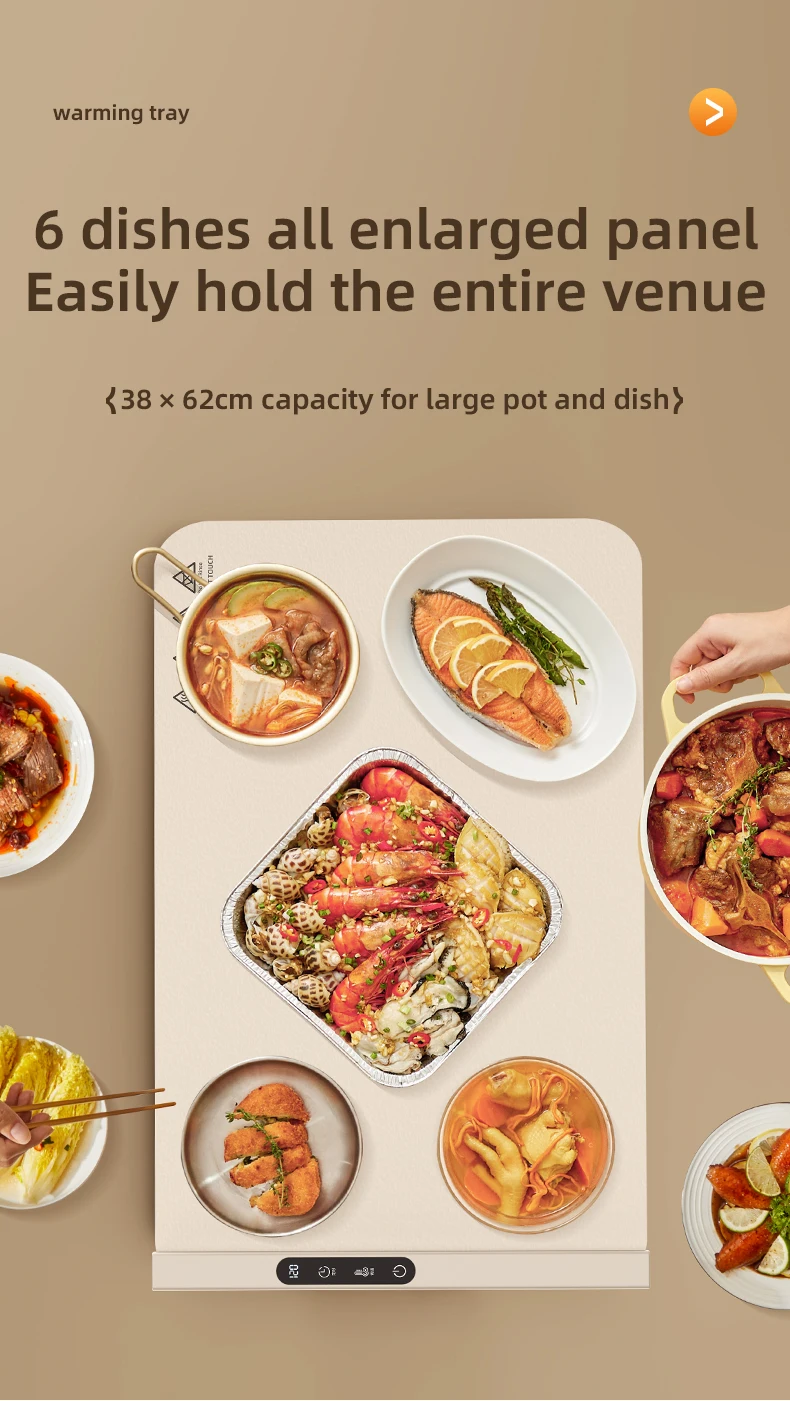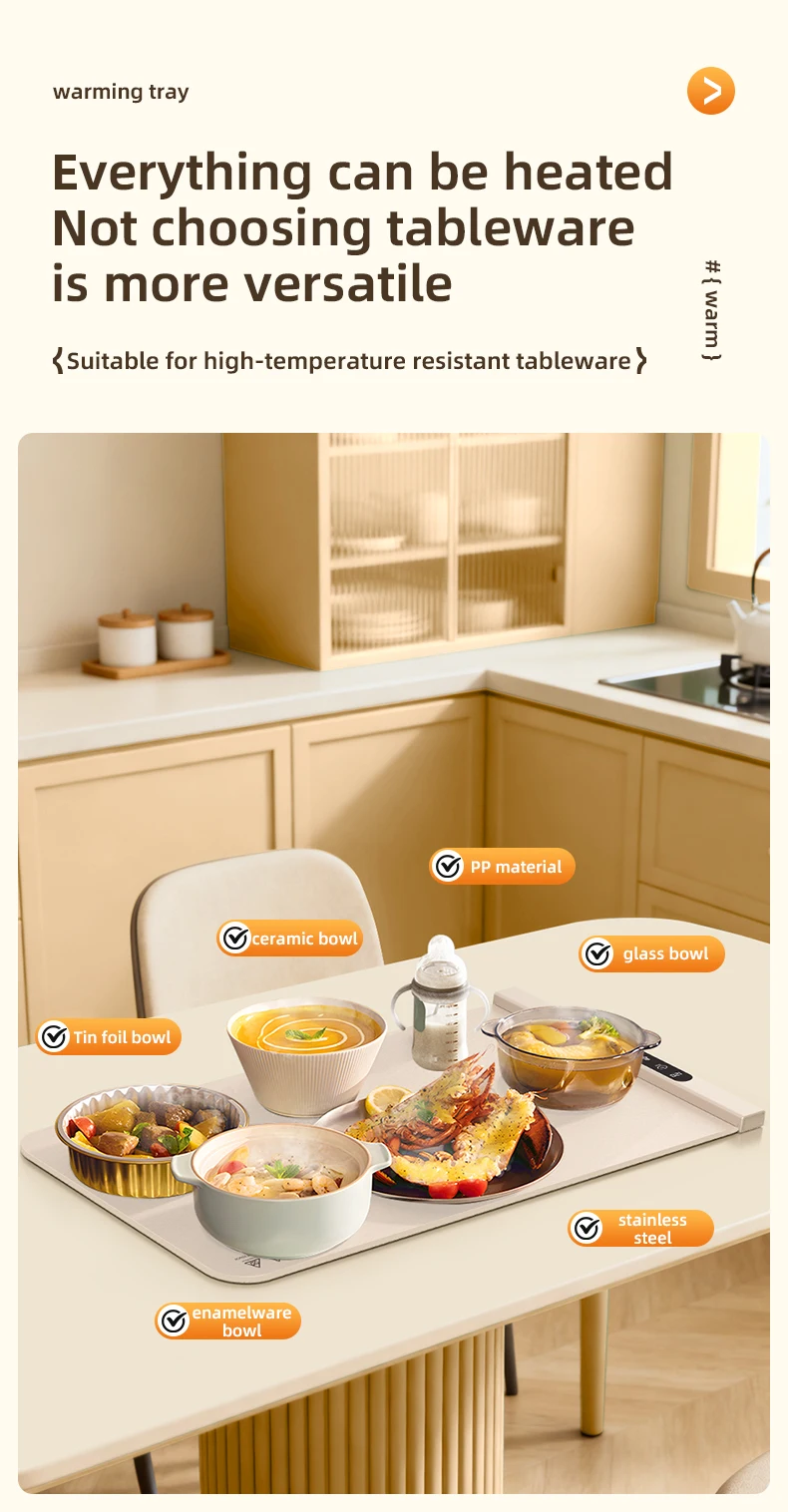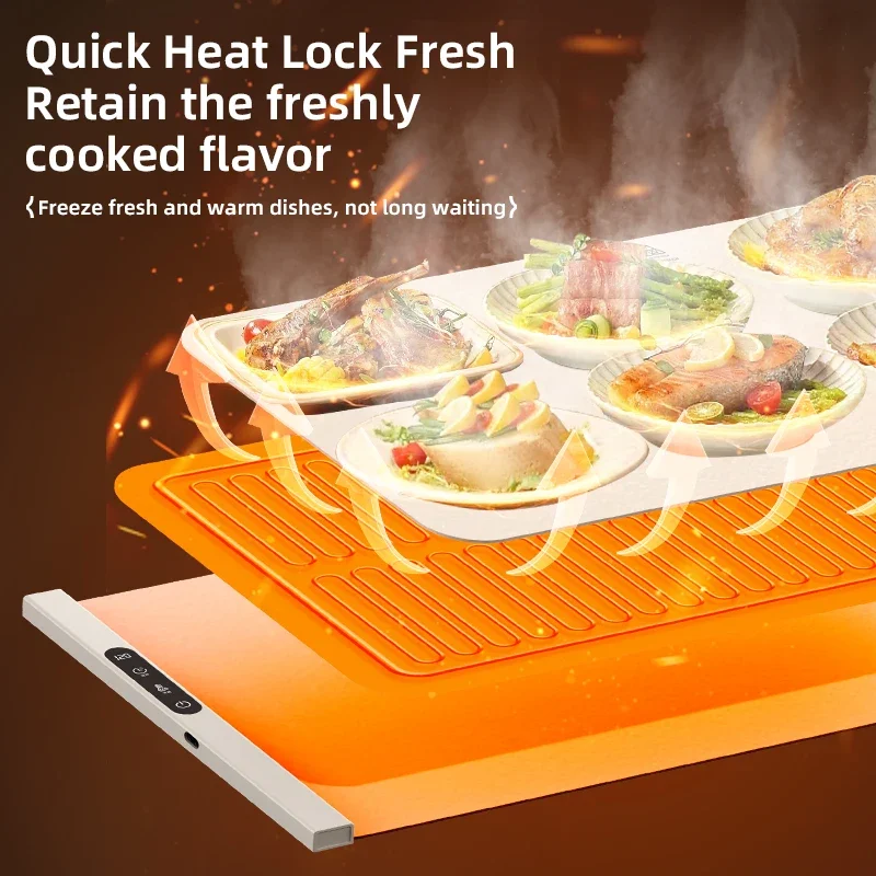 【6-Level Temperature Control】The TINSOL silicone electric heating tray offers 6 adjustable temperature settings ranging from 50°C to 100°C, catering to diverse needs such as warming and defrosting. It helps you prepare meals efficiently while precisely controlling heating and warming temperatures, making it an ideal choice for buffets, parties, and gatherings.